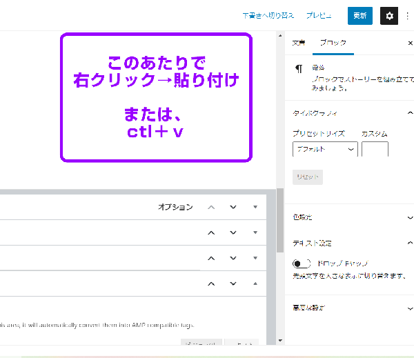 またはctl+v を使って貼り付けます。