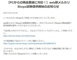 メルカリShops パソコン版試験運用開始